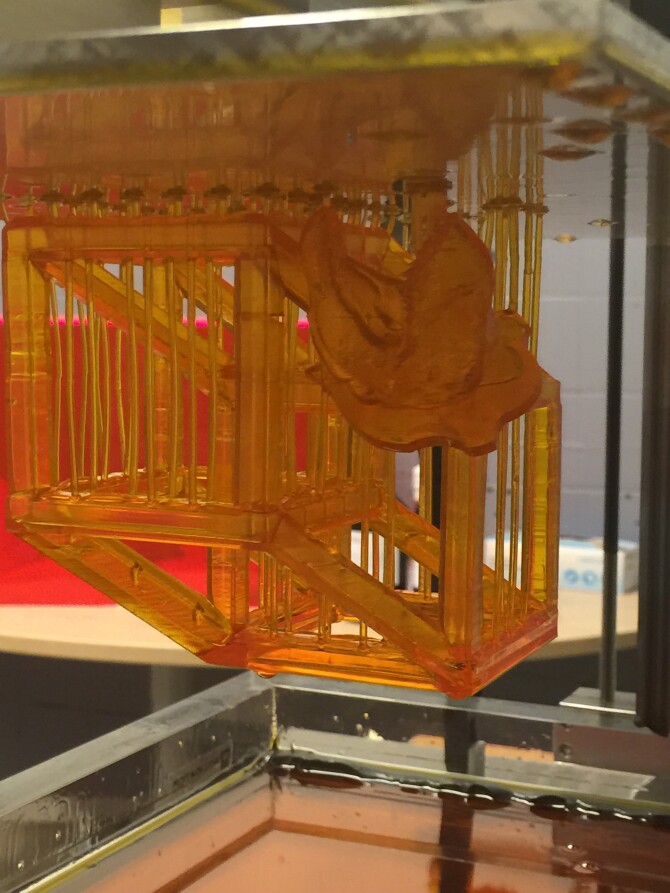 Via 3D Hubs heeft hij Key23D opdracht gegeven om deze combinatie te printen op een Solidator DLP 3D-printer met oranje resin.